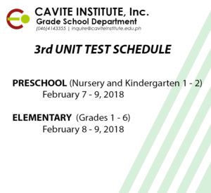 3rd Unit Test Schedule for Junior High School (Grade 7 – 10)